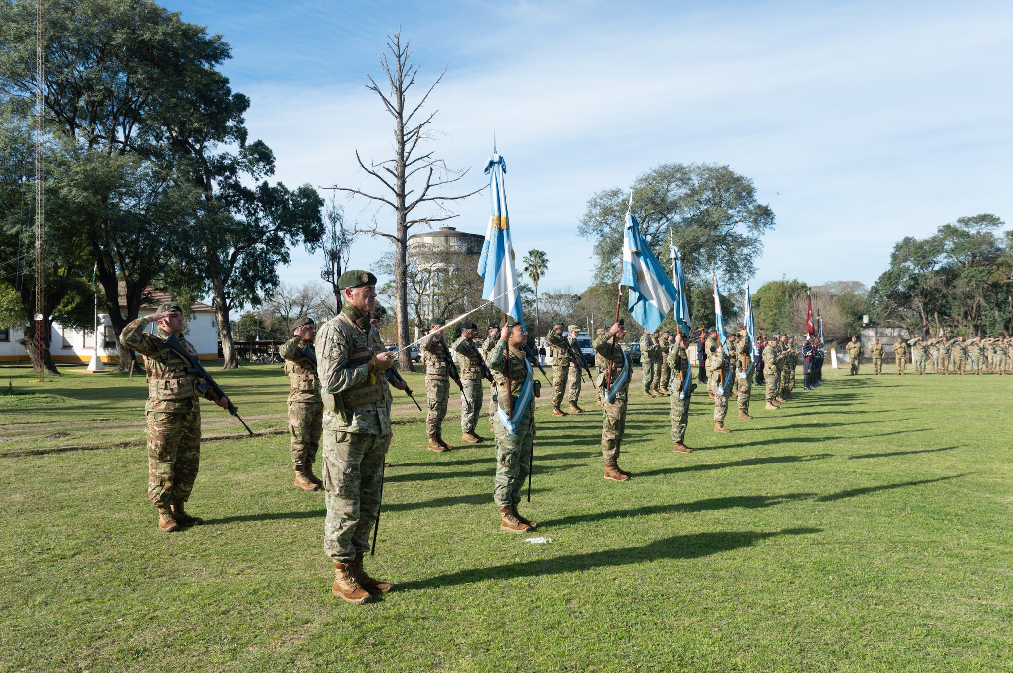 La jornada comenzó con la presentación de la Agrupación “Libertador” al jefe del Estado Mayor General del Ejército, teniente general Carlos Alberto Presti, quien pasó revista y saludó al personal formado.