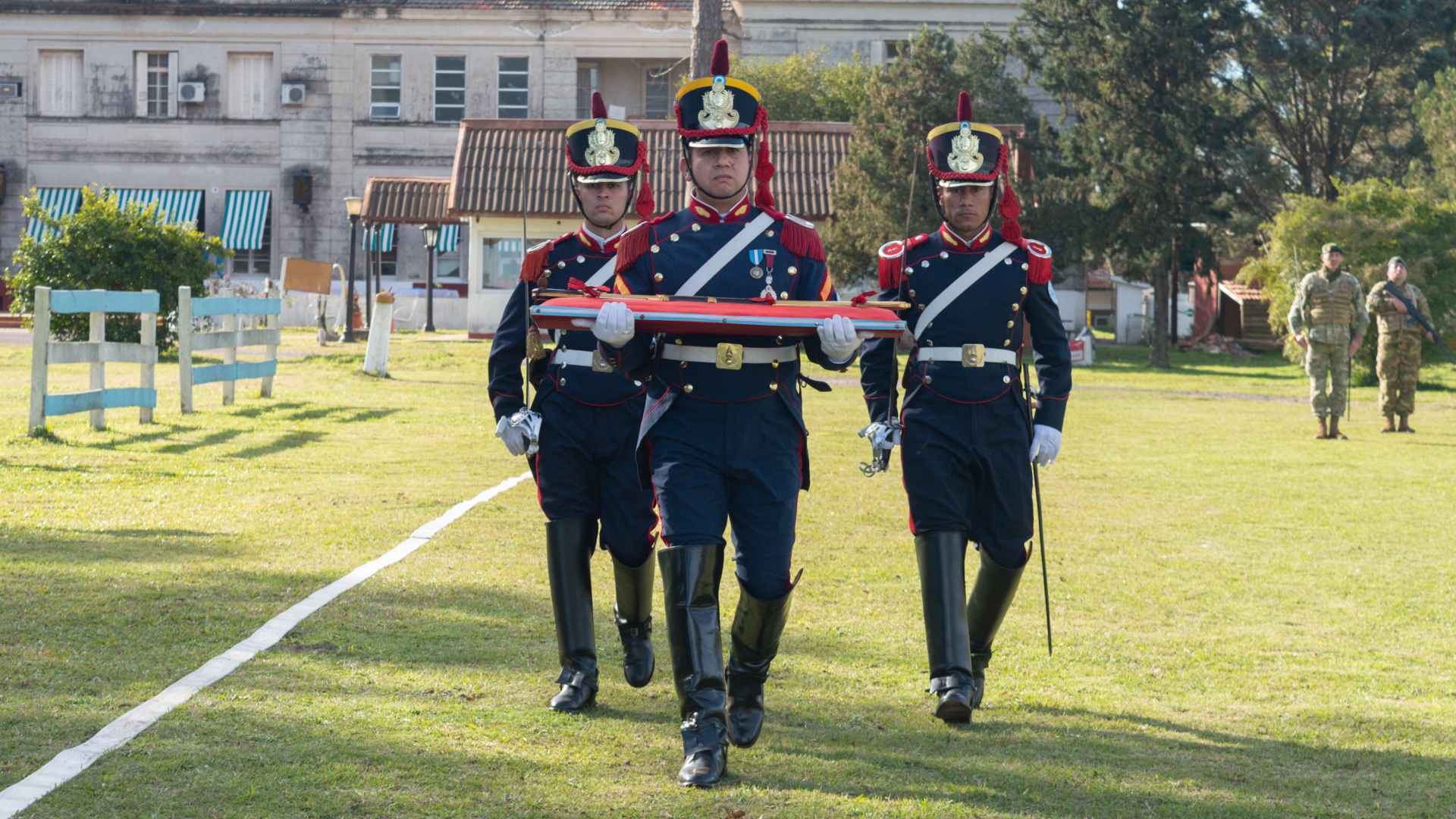 A continuación, ingresó a la plaza de armas el sable corvo del Libertador, portado por efectivos del Destacamento “Yapeyù” del Regimiento de Granaderos a Caballo.
