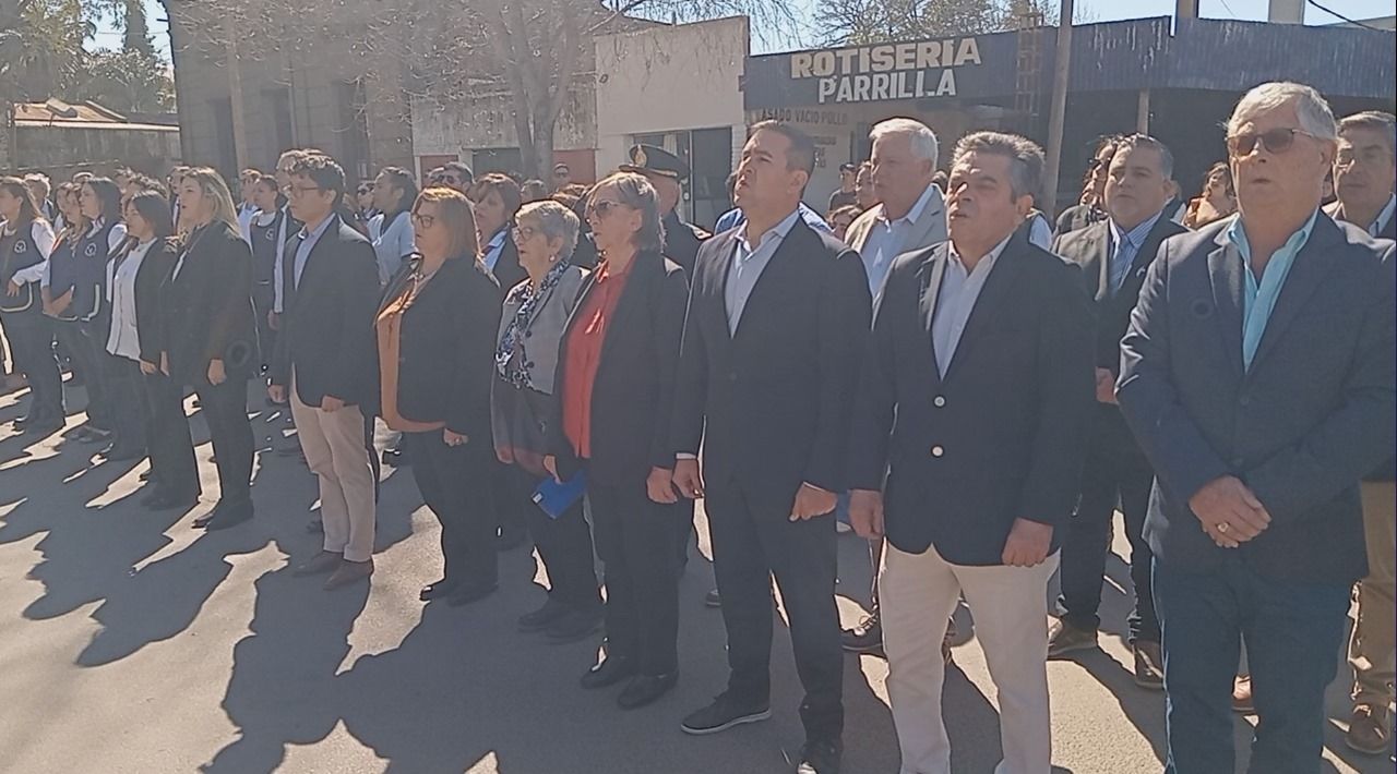 En la oportunidad se entonaron las estrofas del Himno Nacional, el Himno a Sarmiento y se escucharon palabras alusivas de la Docente de la Escuela 435 “Centenario” Malina Obregón y del Intendente Municipal Dr. José Irigoyen.