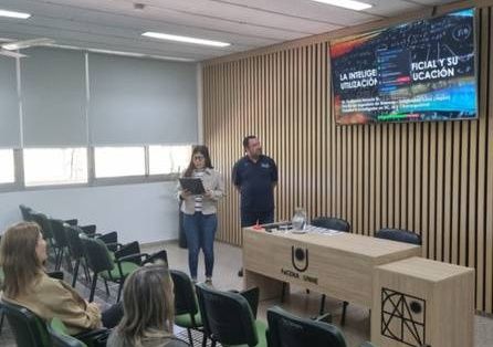 Además, el especialista demostró dos herramientas de IA ampliamente utilizadas en entornos educativos. Por un lado, Microsoft Teams, que se integra con la familia de Office y permite gestionar clases virtuales, comunicarse con tutores y llevar registros.
