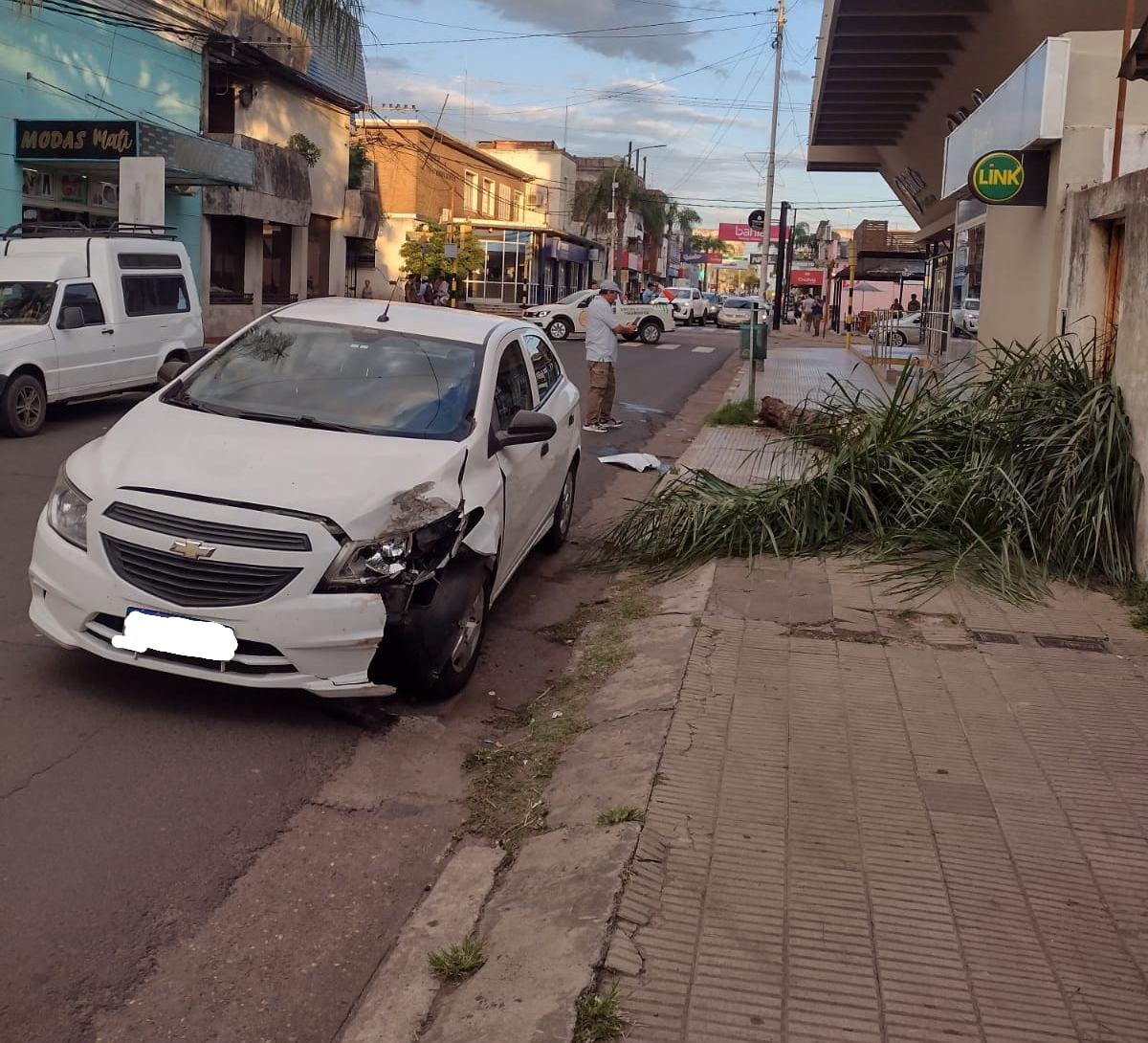 Un Chevrolet Onix se estrelló en horas de la tarde del martes contra una palmera, la colisión se produjo sobre calle Berón de Astrada, a pocos metros de su intersección con Duarte Ardoy, pleno centro de nuestra ciudad.