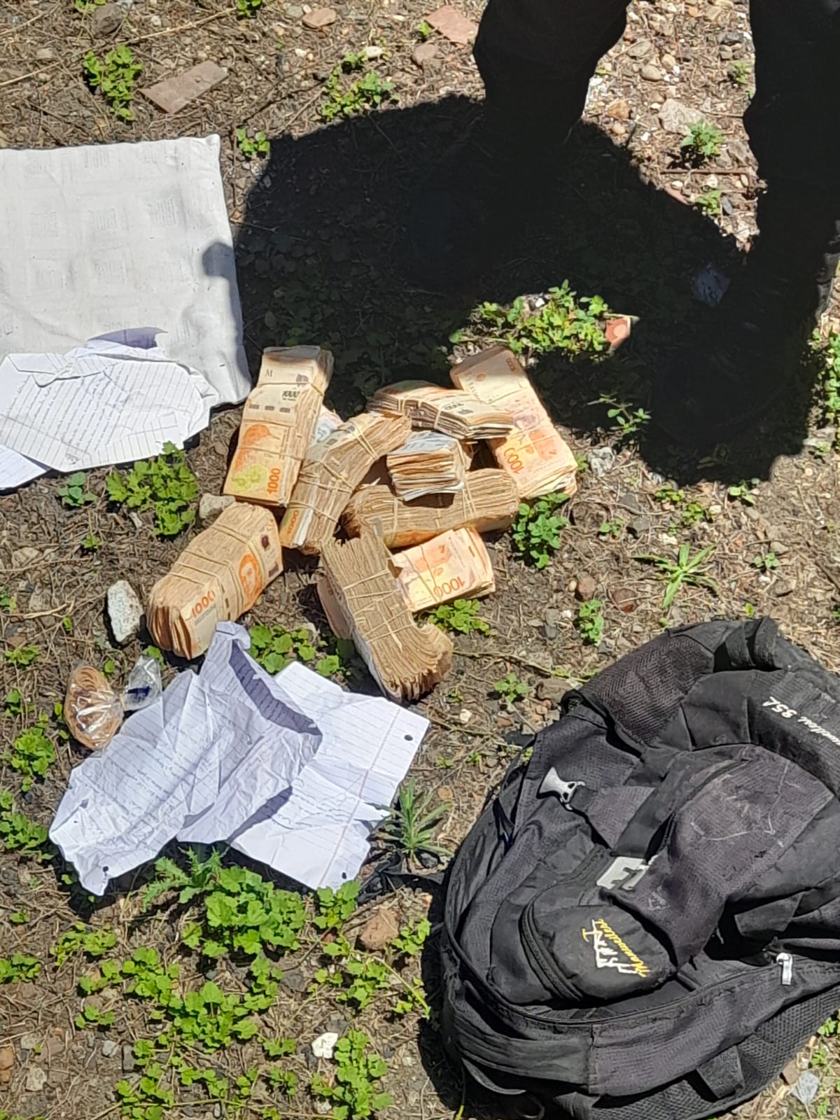 Según relataron a Enfoque Digital, ante la presencia de los habitantes de ese terreno, los policías ingresaron para verificar esa mochila, en cuyo interior encontraron varios fajos de billetes de distintos valores, lo que en presencia de testigos se procedió al conteo, arrojando la suma total de cuatro millones cuatrocientos ochenta y siete mil con veinte pesos.