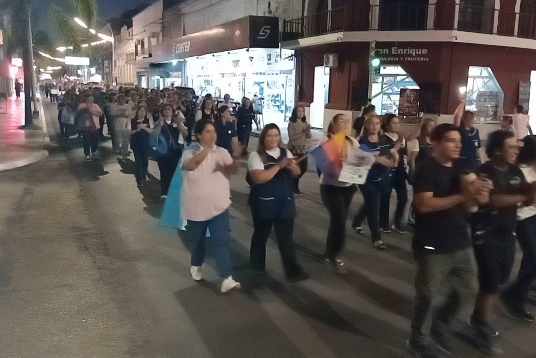 Alrededor de 400 personas se movilizaron en las primeras horas de la noche del miércoles en Curuzú Cuatiá en reclamo de mejoras salariales, en contra de los descuentos realizados por el gobierno provincial y además en pedido de mejores condiciones laborales.