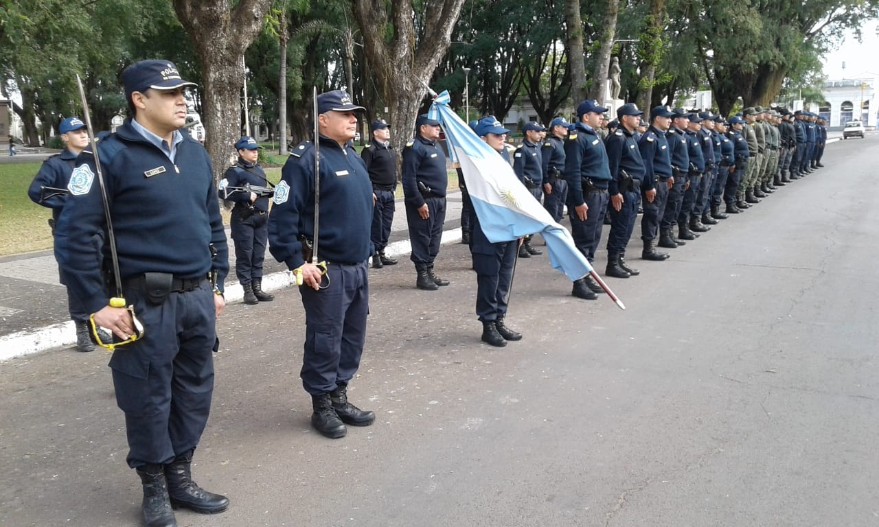 Primeramente, las autoridades saludaron a la Agrupación Especial 1 de julio y luego se entonaron las estrofas del Himno Nacional Argentino, seguidamente el Cura Párroco Ariel Giménez realizo una Invocación Religiosa y a continuación se llevó a cabo el traspaso de mando