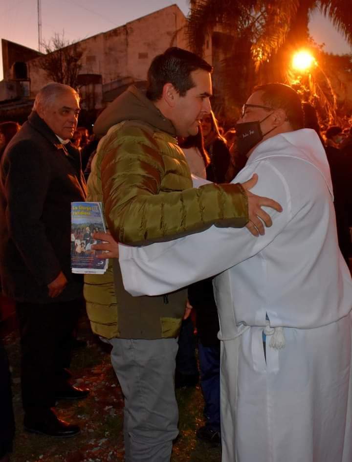 El Intendente recibió luego el saludo del Párroco José Ortiz y de vecinos presentes en la celebración.