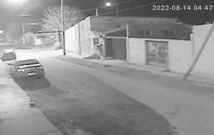En las imágenes, que la víctima cedió gentilmente a Enfoque Digital, puede observarse al delincuente en plena acción, llegando al lugar y violentando una puerta garaje e ingresando al interior y al cabo de algunos segundos sale corriendo con el tubo de gas de 10 kilos en el hombro.
