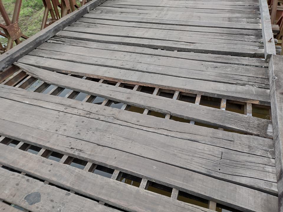 Pero también observamos lo arriesgado y peligroso que es poder pasar cada día, muchas maderas están seriamente afectadas por la intemperie, problemas que se suman a algo que lamentablemente se convirtió en costumbre como es el robo de las maderas.