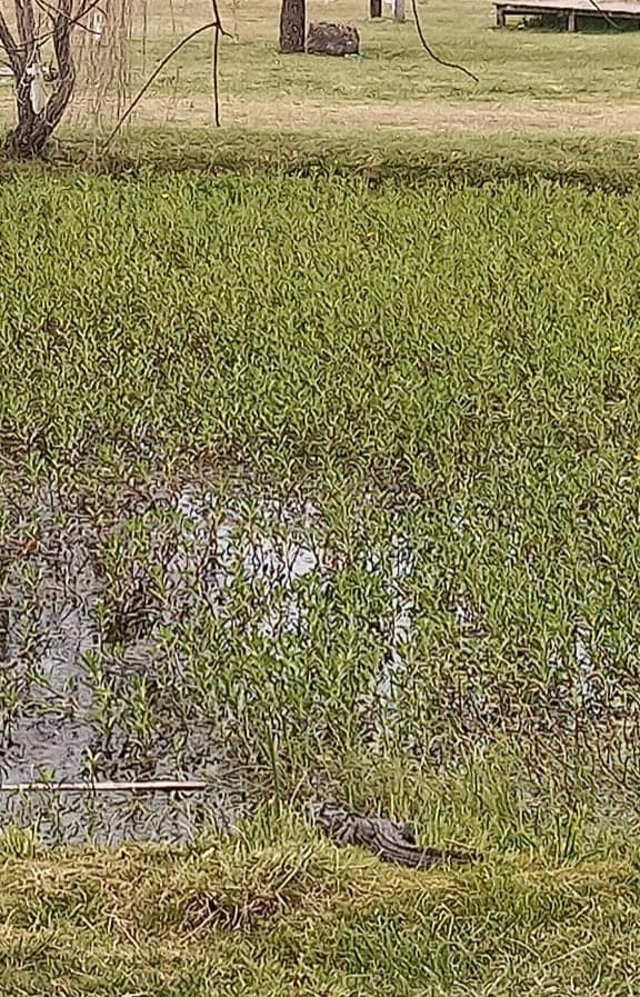 El yacaré que habita la laguna en el acceso oeste a nuestra ciudad fue captado por las cámaras de una persona que caminaba por el lugar, quien compartió las imágenes con Enfoque Digital.