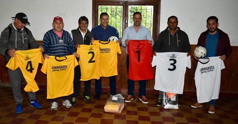 Mientras que en Mariano I. Loza hizo entrega de dos juegos de camisetas+pantalón+pelotas, a dos equipos de veteranos que disputando el torneo local fútbol.