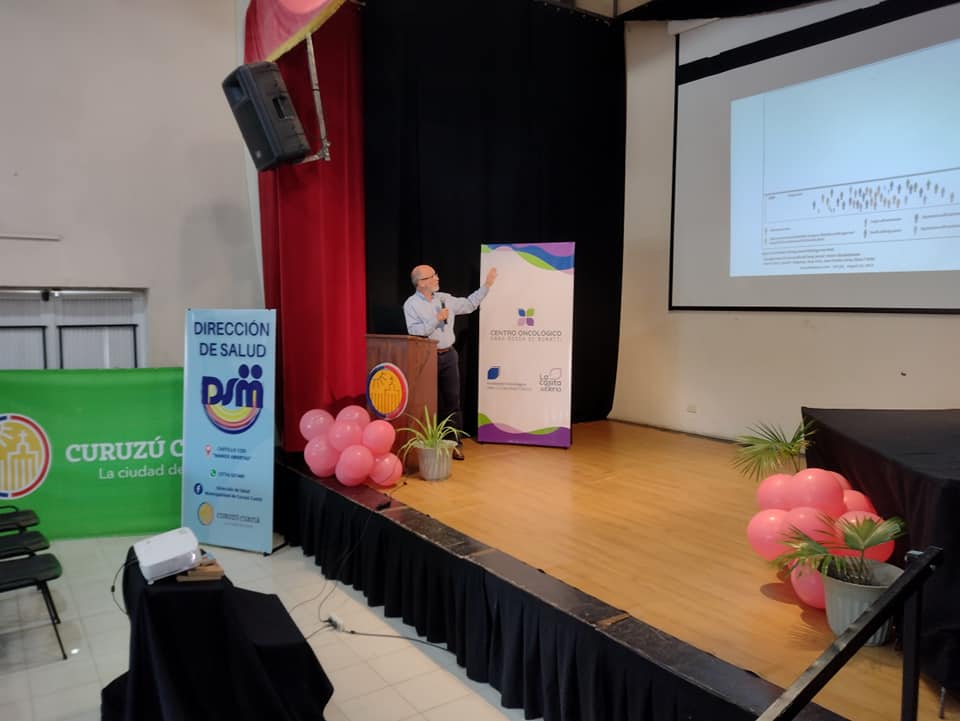 El Dr. Cristian Larralde, Gerente Médico del Centro Oncológico, tuvo a su cargo la presentación de tan ilustre visita médica quien llevó adelante una muy interesante exposición ante una importante presencia de interesados, la actividad contó con el apoyo del municipio y se realizó en el marco de las actividades por el mes de la prevención del cáncer de mama.