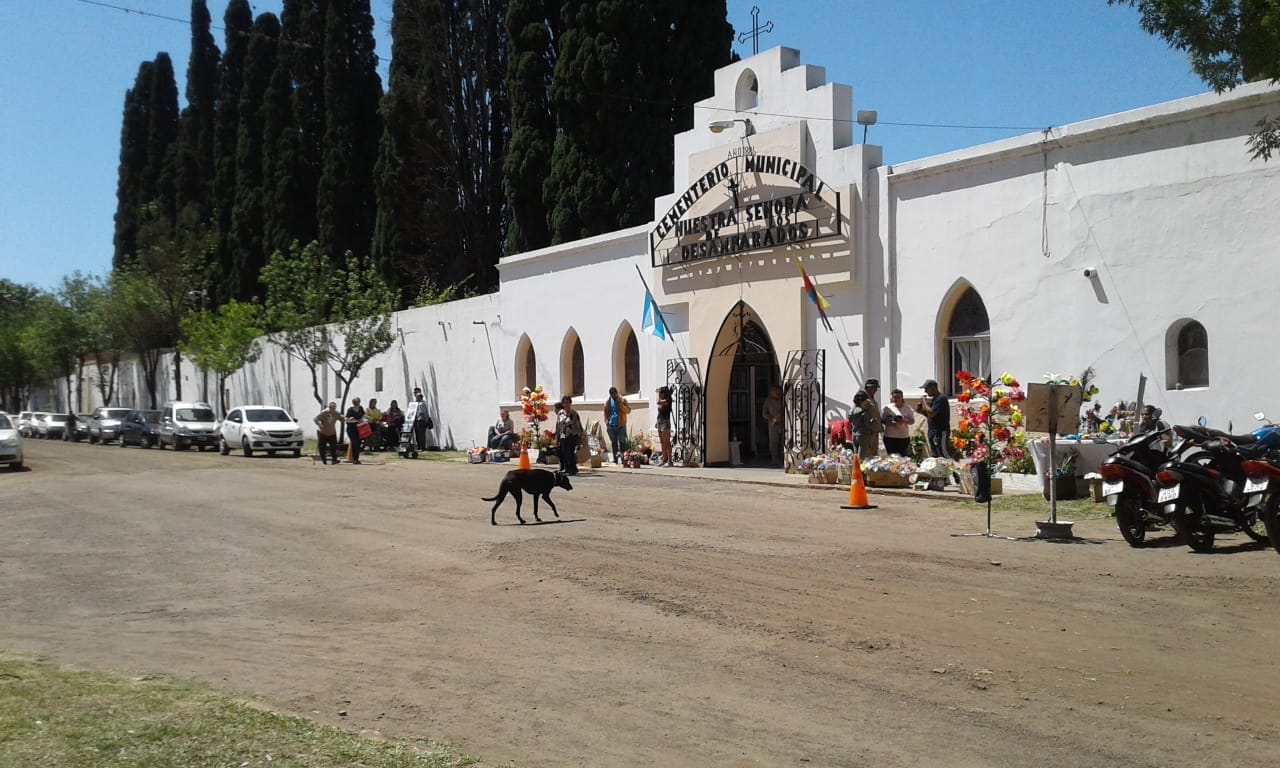 En las afueras al cementerio la Dirección de Tránsito dispuso un operativo especial, se distribuyeron los ingresos y salidas para evitar aglomeraciones de vehículos, también se afectaran espacios exclusivos para el estacionamiento de automóviles y motos y no faltaron los vendedores ambulantes ofreciendo productos como velas, flores o cintas entre otras cosas.