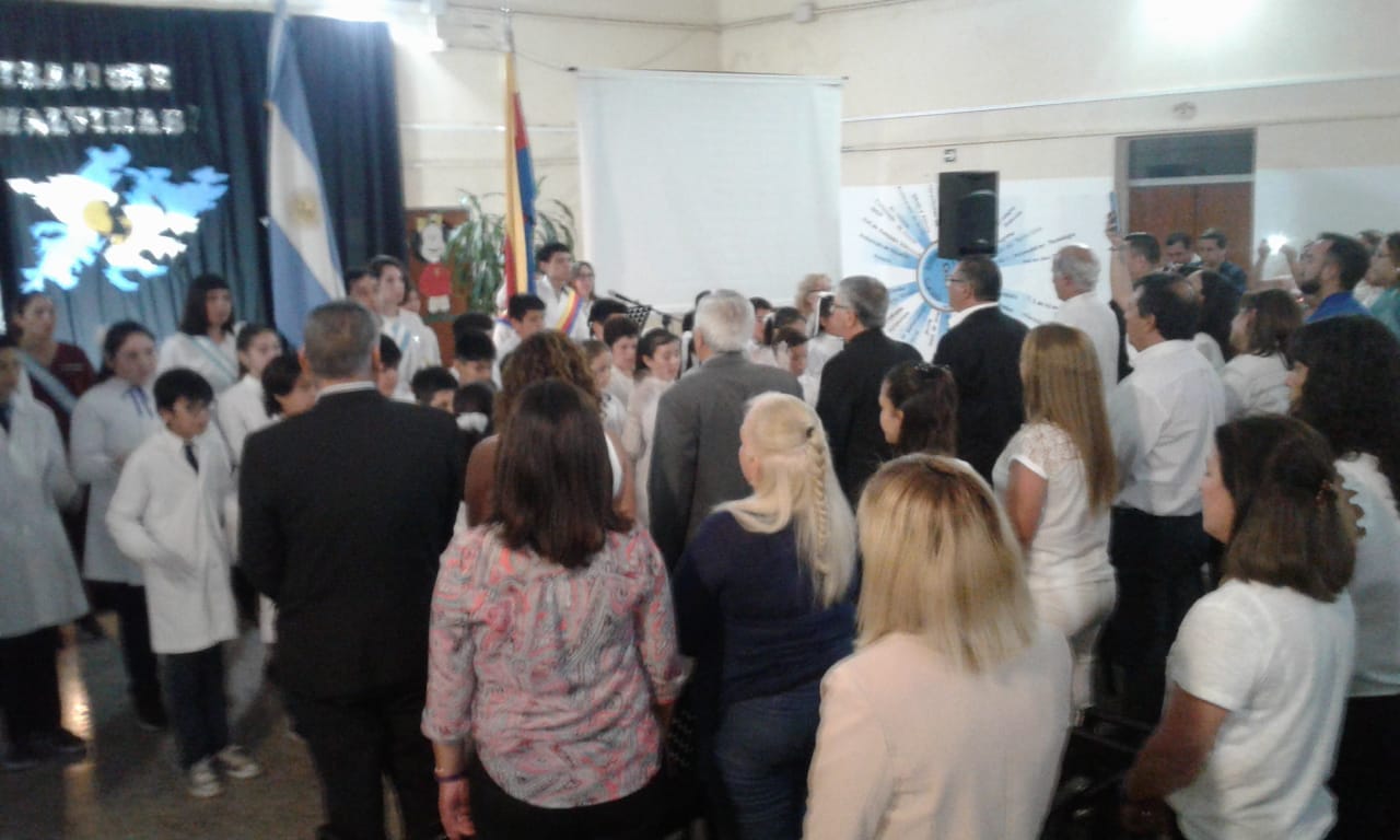 Este acto, declarado de interés municipal por el HCD, se realizó en el Salón de Usos Múltiples del Instituto ante la presencia de directivos, profesores, alumnos, veteranos de guerra y público en general. Se destaca también la participación de los alumnos de quinto grado de la escuela 32 Belgrano que interpretaron el Himno Nacional en lenguaje de señas.