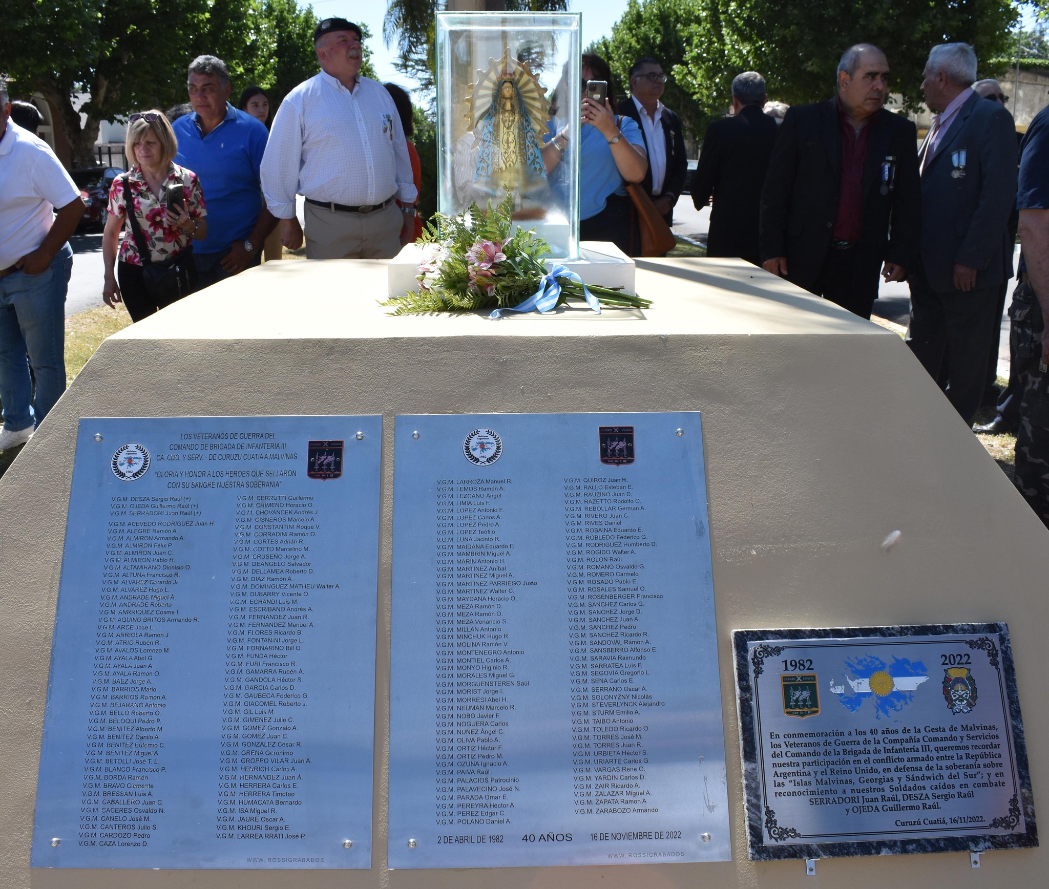 Para estos descubrimientos se los citó al Señor Intendente Municipal José Irigoyen, al Viceintendente Guillermo Morandini y a los VGM Pedro Blanco y Rubén Gamarra y finalmente se escucharon las palabras del Veterano de Guerra de Malvinas Humberto Rodríguez quien puso énfasis en que "estas placas deben recordar que la cuestión de Malvinas debe estar siempre presente".