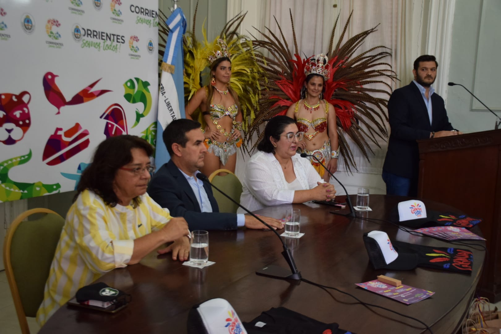 Encabezaron la presentación el intendente de Curuzú Cuatiá, José Irigoyen; la directora de Turismo y Cultura de la Municipalidad, María Virginia Aguirre Talamona; y la gerente de Alma Producciones, empresa organizadora de dicho Carnaval, Graciela Borré, entre otras autoridades provinciales y comunales. Esta última comentó que “estamos trabajando desde el 2018, cuando teníamos un carnaval chico en esta localidad, hasta que el intendente tomó el desafío de hacer grande esta fiesta”, a lo que agregó: “Es así que nos animamos al desafío y terminamos en el 2020 con un carnaval de 8000 personas por noche”.