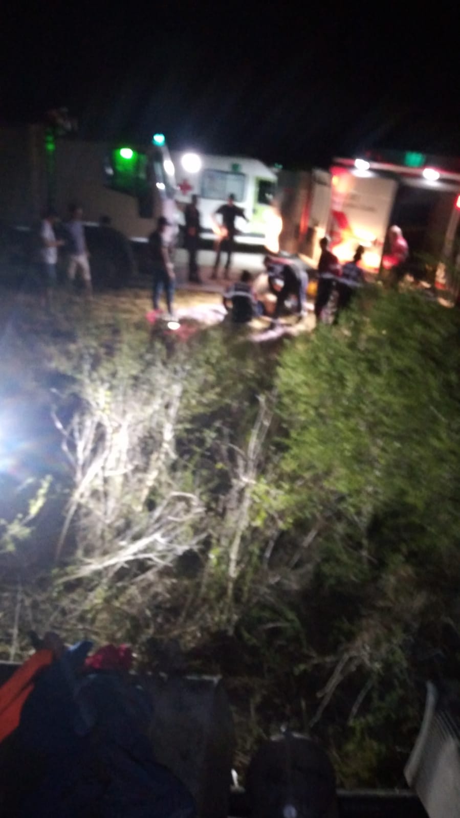 Al arribar los uniformados hallaron a varias personas de distintos camiones ayudando al conductor del camión accidentado, quien que se encontraba atrapado en el interior de la cabina del vehículo.