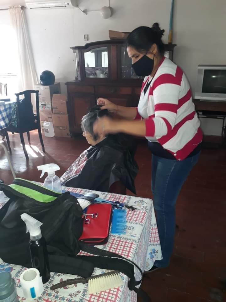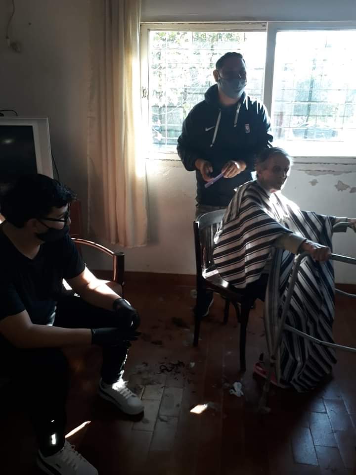 Ellos son Horacio Pintos, Sonia Acevedo y Alvaro Pintos quienes donaron parte de su mañana a cortar el cabello a los abuelos del Hogar.