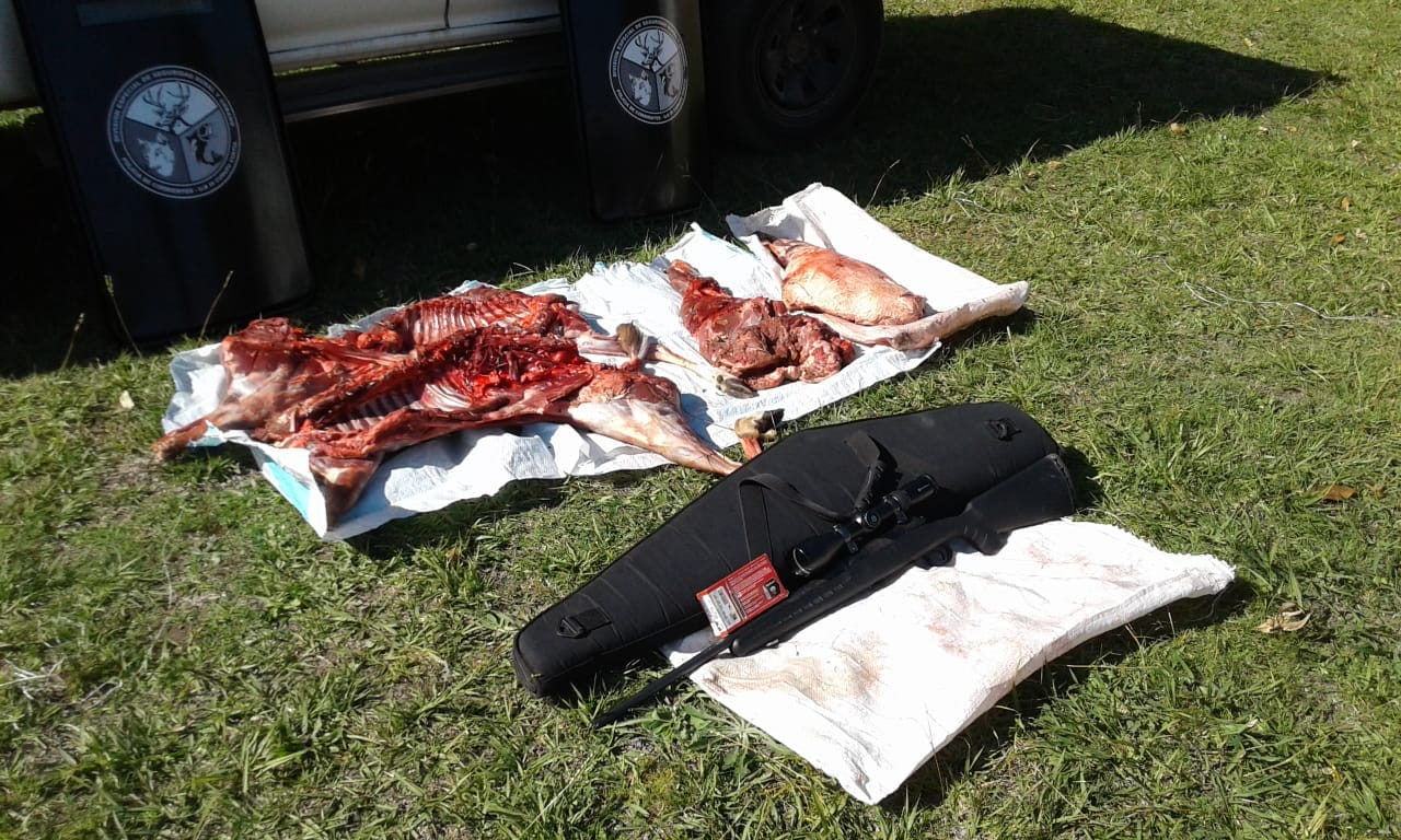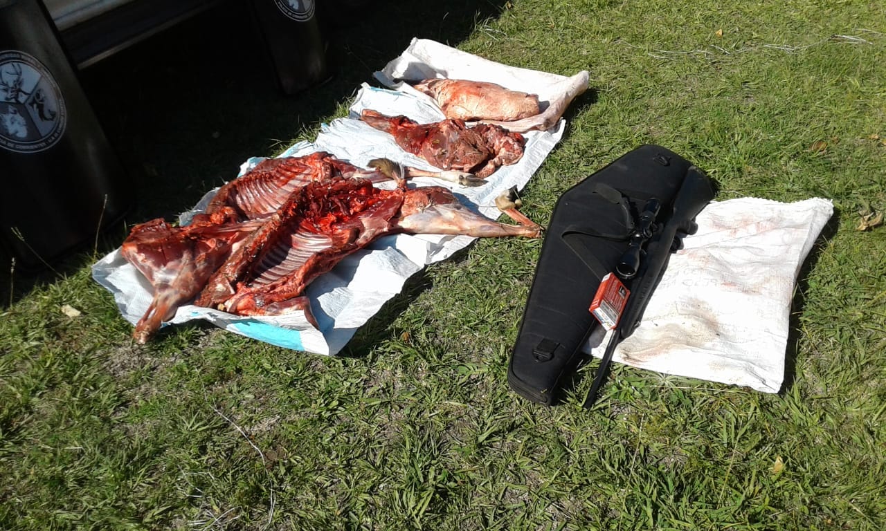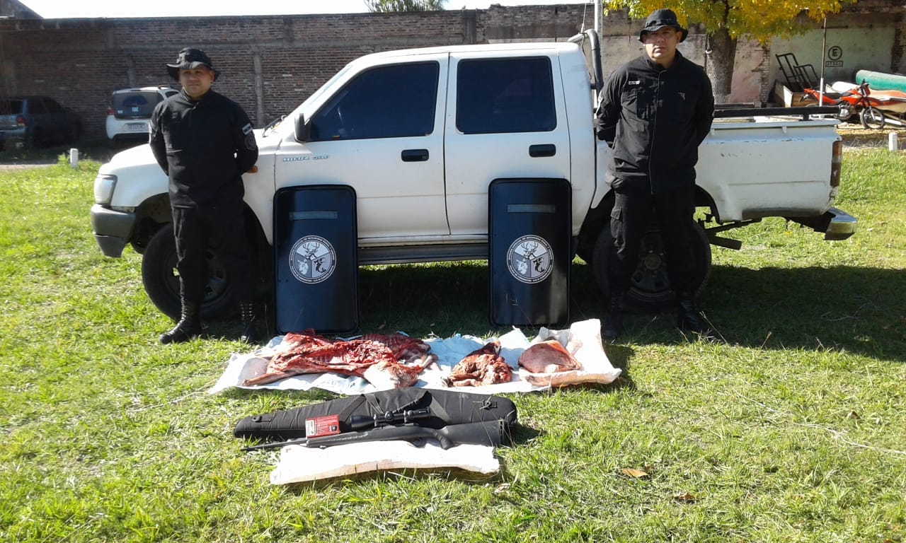 En la oportunidad detuvieron la marcha de un vehículo en el que se movilizaban dos personas de sexo masculino, mayores de edad, domiciliados en nuestra ciudad. Al requisar el rodado en cuestión se encontraron con 70 kilos de carne faenada de ciervo axis y chancho y un fusil de grueso calibre.