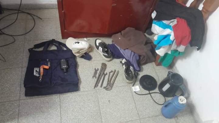 Entre las cosas que transportaba, poseía una soldadora, un teléfono celular marca Samsung, un termo de color celeste, un pendrive, herramientas y ropas varias.