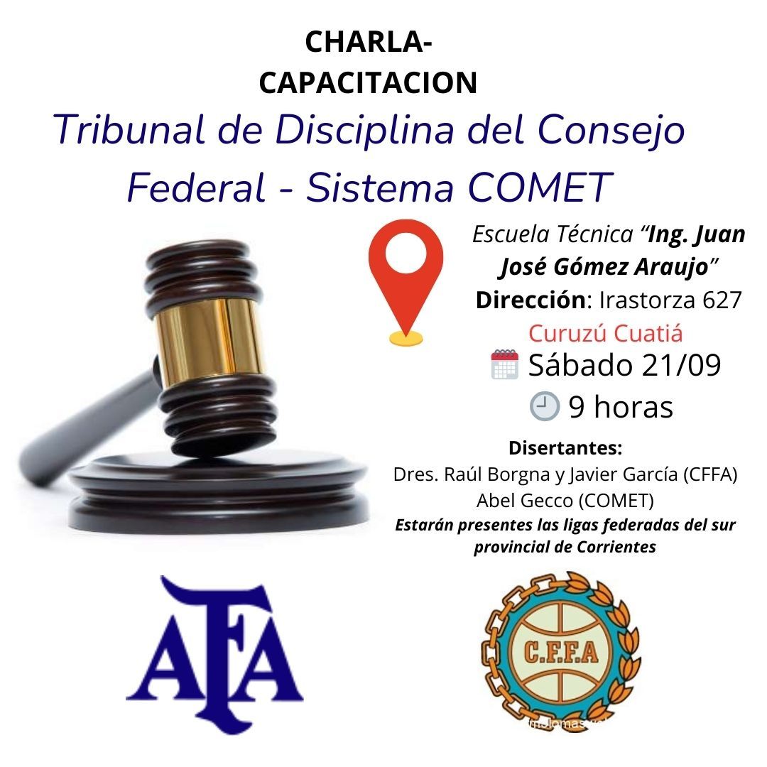 Este sábado 21 de septiembre nuestra ciudad será sede de una importante capacitación del Tribunal de Disciplina del Consejo Federal del Fútbol Argentino; así informó a Enfoque Digital el Delegado del organismo en la Provincia de Corrientes Luis Edgardo “Yuyo” Corradini.
