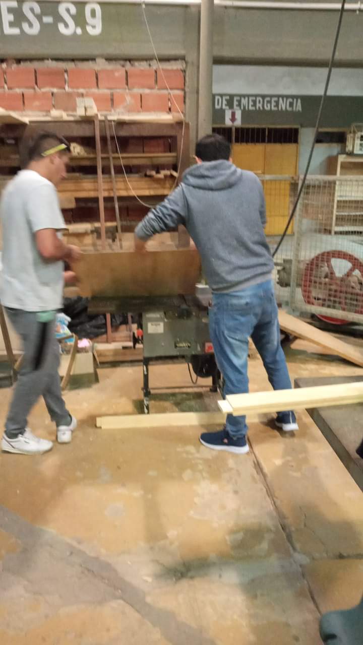 El profesor compartió las fotos, contó que se utilizó madera de la especialidad Formacion Profesional "Carpintero de Banco", Curso de Adultos, turno noche.