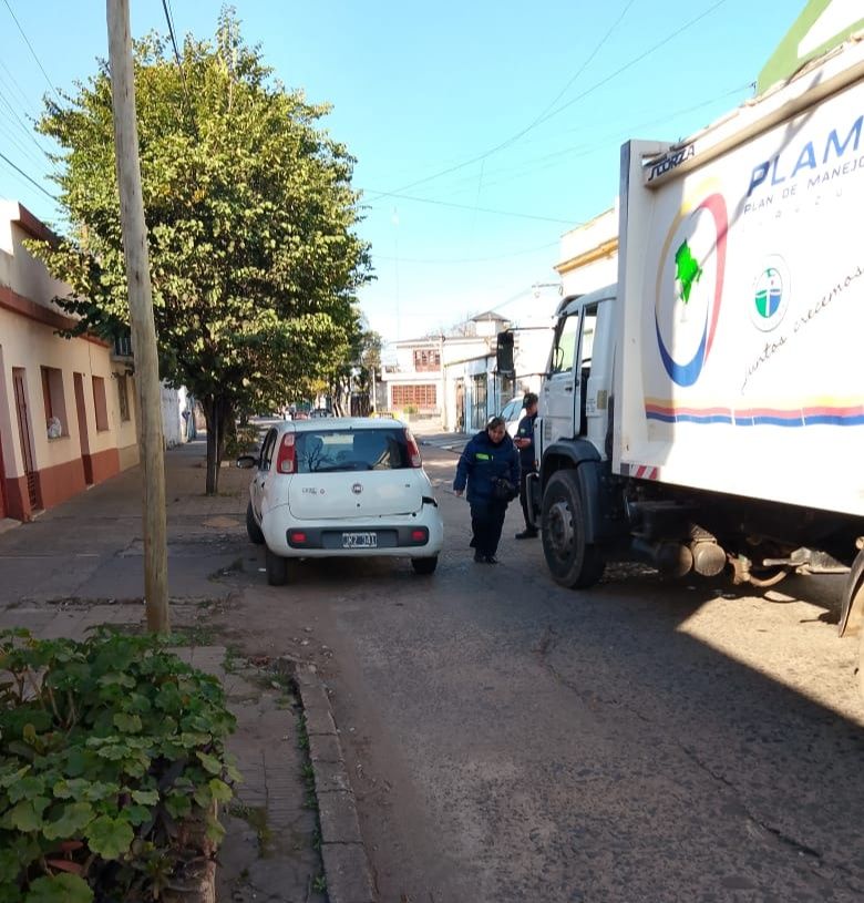 Un camión municipal recolector de residuos y un automóvil protagonizaron en horas de la mañana del martes una colisión sobre calle Rodríguez Peña entre Caá Guazú e Irastorza.