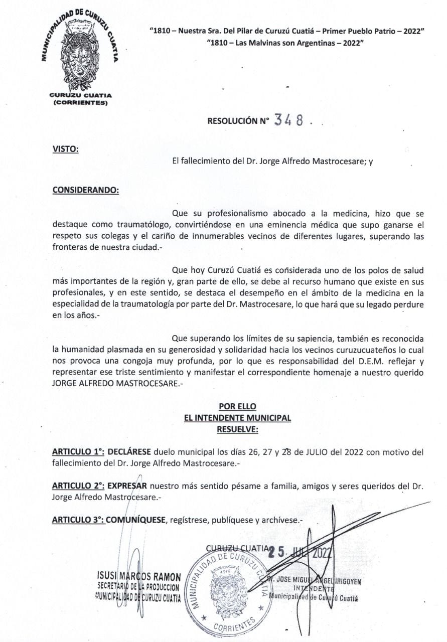 Disponen tres días de duelo por el fallecimiento del Dr. Mastrocesare Lo resolvió el Intendente Municipal José Irigoyen para los días 26, 27 y 28 de julio. facebook twitter Anterior Siguiente