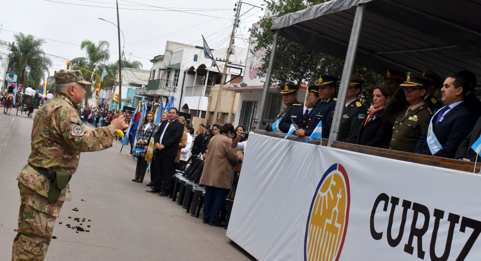 El acto central estuvo encabezado por el intendente José Irigoyen y contó con la participación de autoridades de fuerzas militares y de seguridad, representantes de establecimientos escolares y un nutrido grupo de vecinos que se sumaron a la celebración de esta fecha patria.