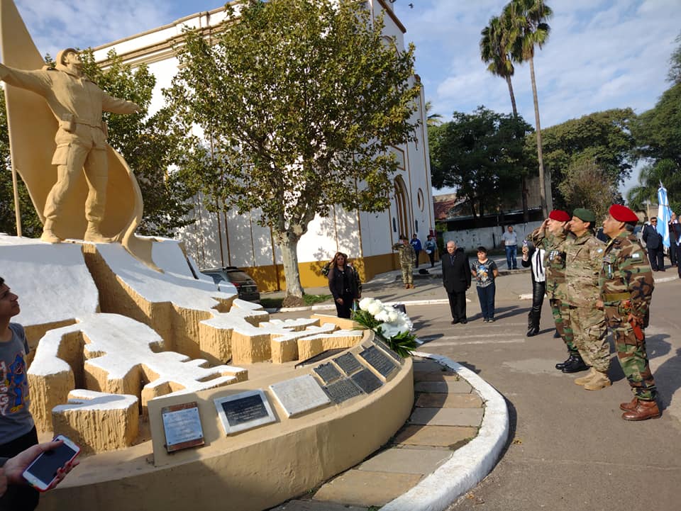 En el marco del Día de la Afirmación de los Derechos Argentinos sobre Malvinas, personal de la Promoción 1974 del Arma de Infantería, egresados de la Escuela de Suboficiales “Sargento Cabral”, rindieron un sentido Homenaje frente al Monumento al Soldado ubicado en la intersección de calle Juan Pujol y Avenida España de nuestra ciudad.