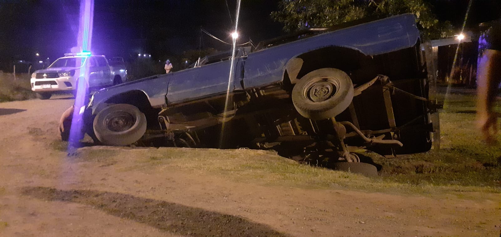 En horas de la noche del domingo se produjo un accidente en la intersección de Avenida Laprida y Deán Funes de nuestra ciudad, la misma fue protagonizada por una camioneta cuyo conductor por causas que se desconocen perdió el control y terminó en un zanjon.