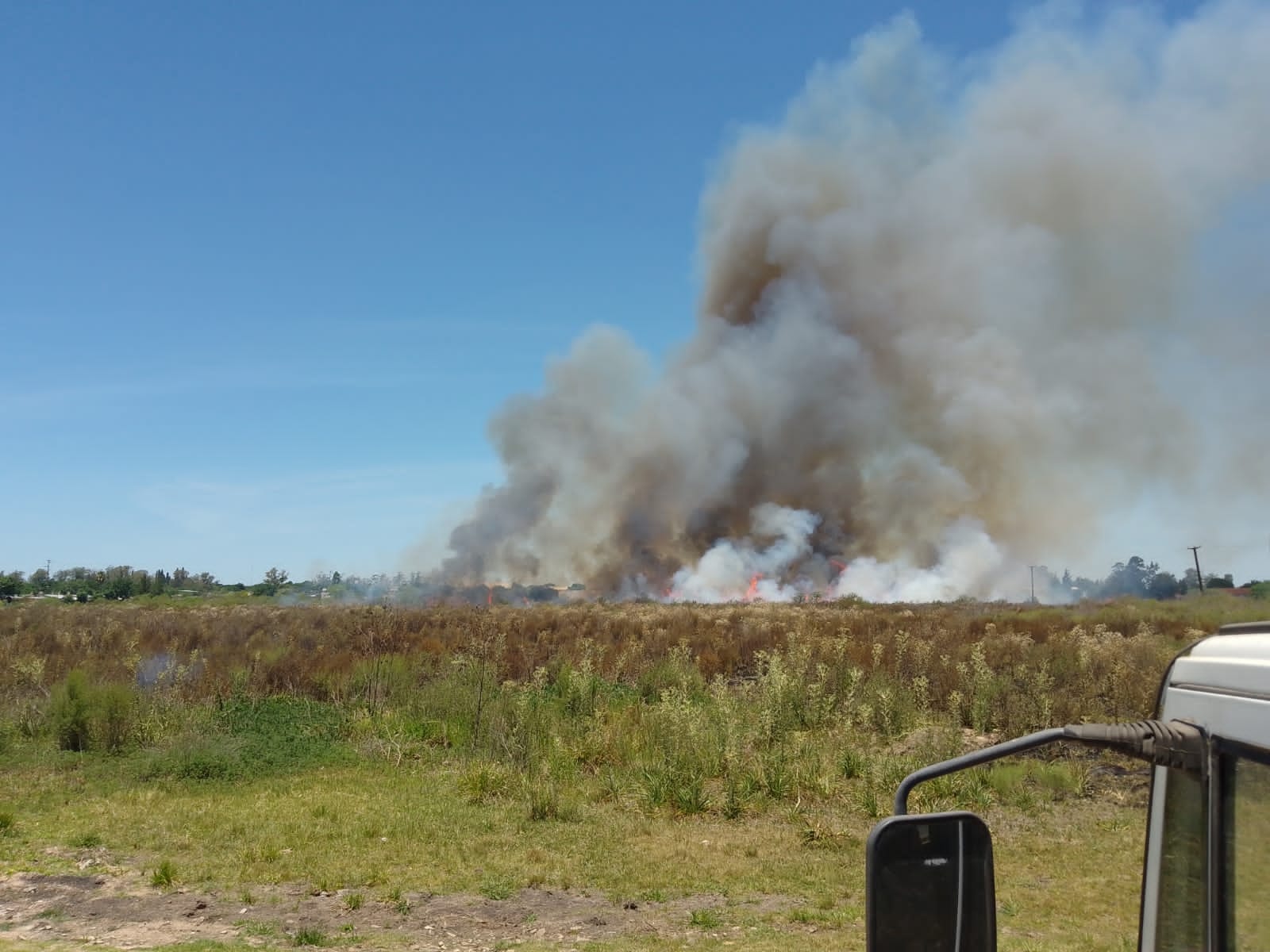 Diez Bomberos de la Sociedad Cuerpo de Bomberos Voluntarios de Curuzú Cuatiá sofocaron un extenso foco ígneo en cercanías de la Ruta Nacional 119, al Arroyo Curuzú y en inmediaciones del Parque Martín Fierro.