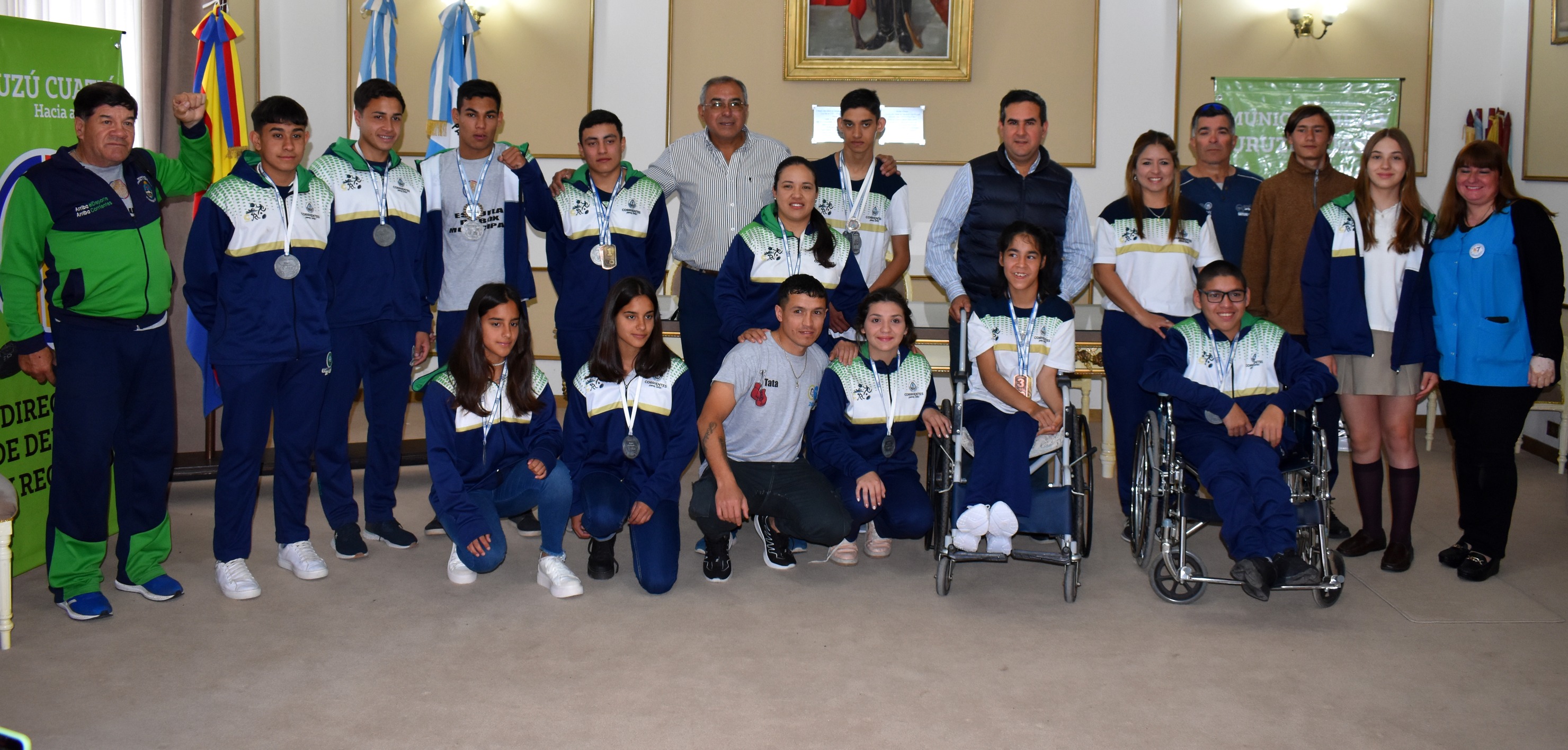 El intendente municipal José Irigoyen, acompañado de funcionarios de su gabinete, recibió este jueves por la mañana en el Salón Dorado de los Intendentes a los deportistas que participaron en la instancia nacional de los Juegos Nacionales Evita 2022.