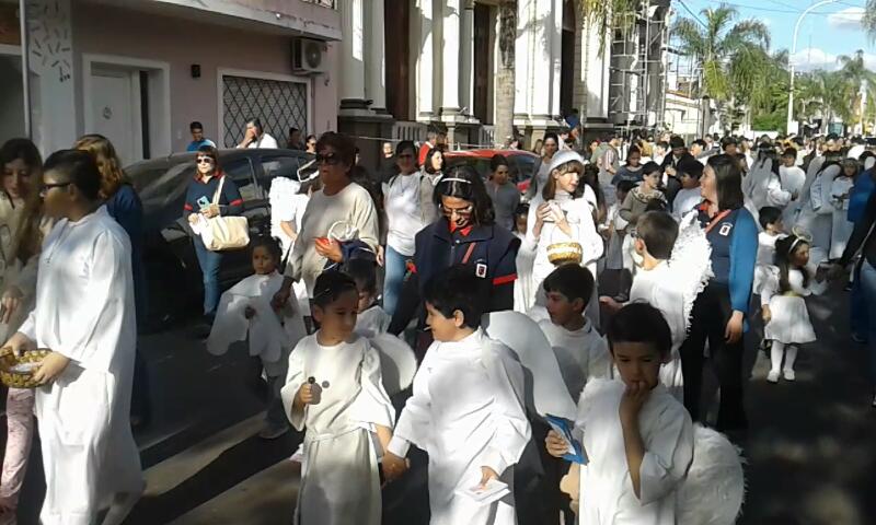 En horas de la tarde del martes se realizó la marcha conocida como “Ángeles Somos”, una costumbre donde los niños se personifican de angelitos y recorren las calles de la ciudad intercambiando bendiciones y estampas por algo dulce.