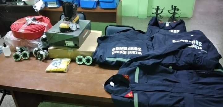 Se trata de overoles de fajina Rit Stop, borceguí forestal, mangas específicas para incendios estructurales, acoples y reductores.