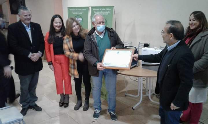 En el marco de la jornada sobre enfermedades vectoriales para la IV Región Sanitaria que la Dirección de Zoonosis y Enfermedades Vectoriales de la Provincia realizó en la mañana del jueves en el Club Huracán, el Ministro de Salud Ricardo Cardozo entregó una plaqueta al Médico Veterinario Daniel Sarli en reconocimiento al trabajo y trayectoria al frente del programa provincial de lucha contra la hidatidosis.