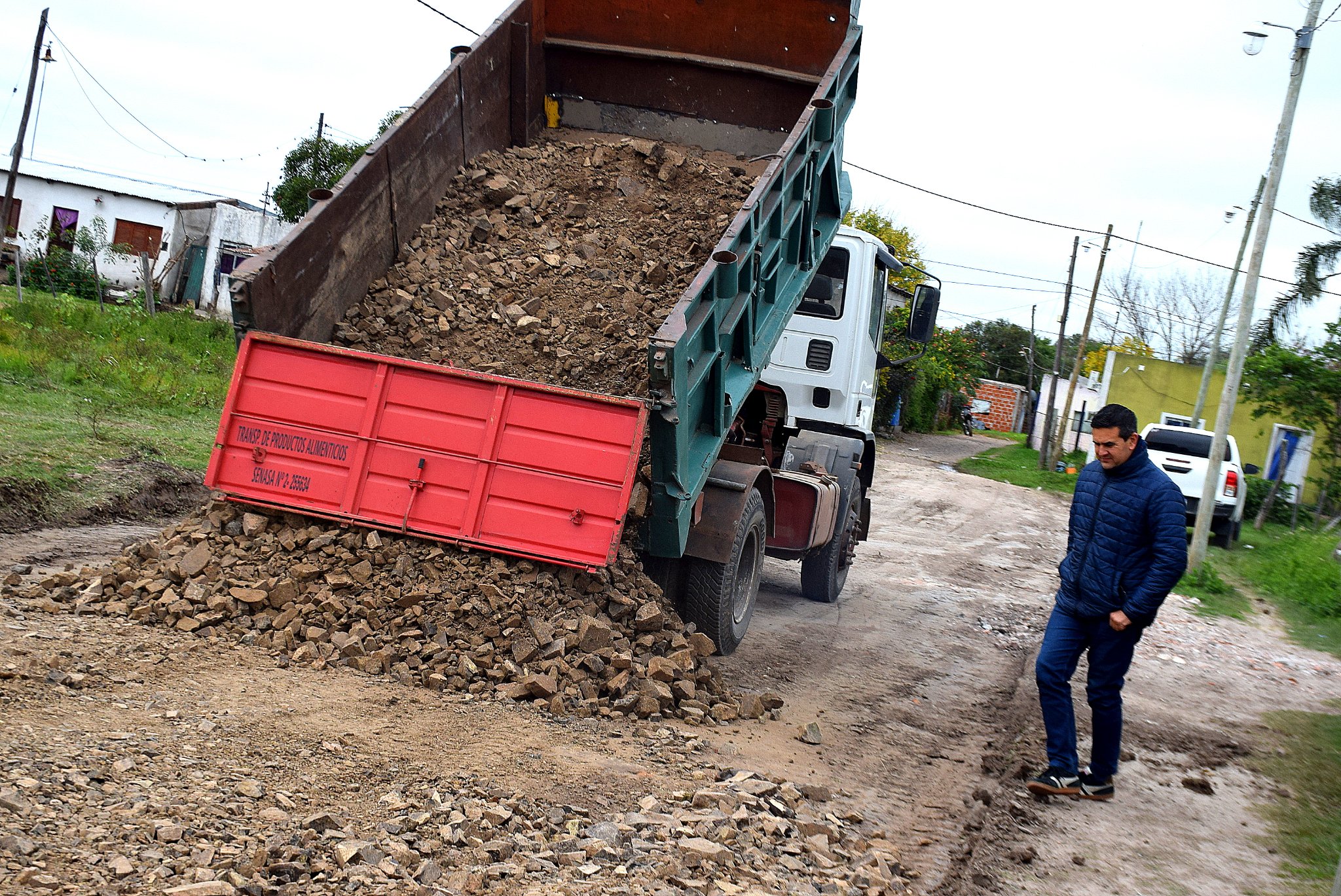 José Irigoyen verifico la nueva calle habilitada en el barrio y los trabajos de enripiado.