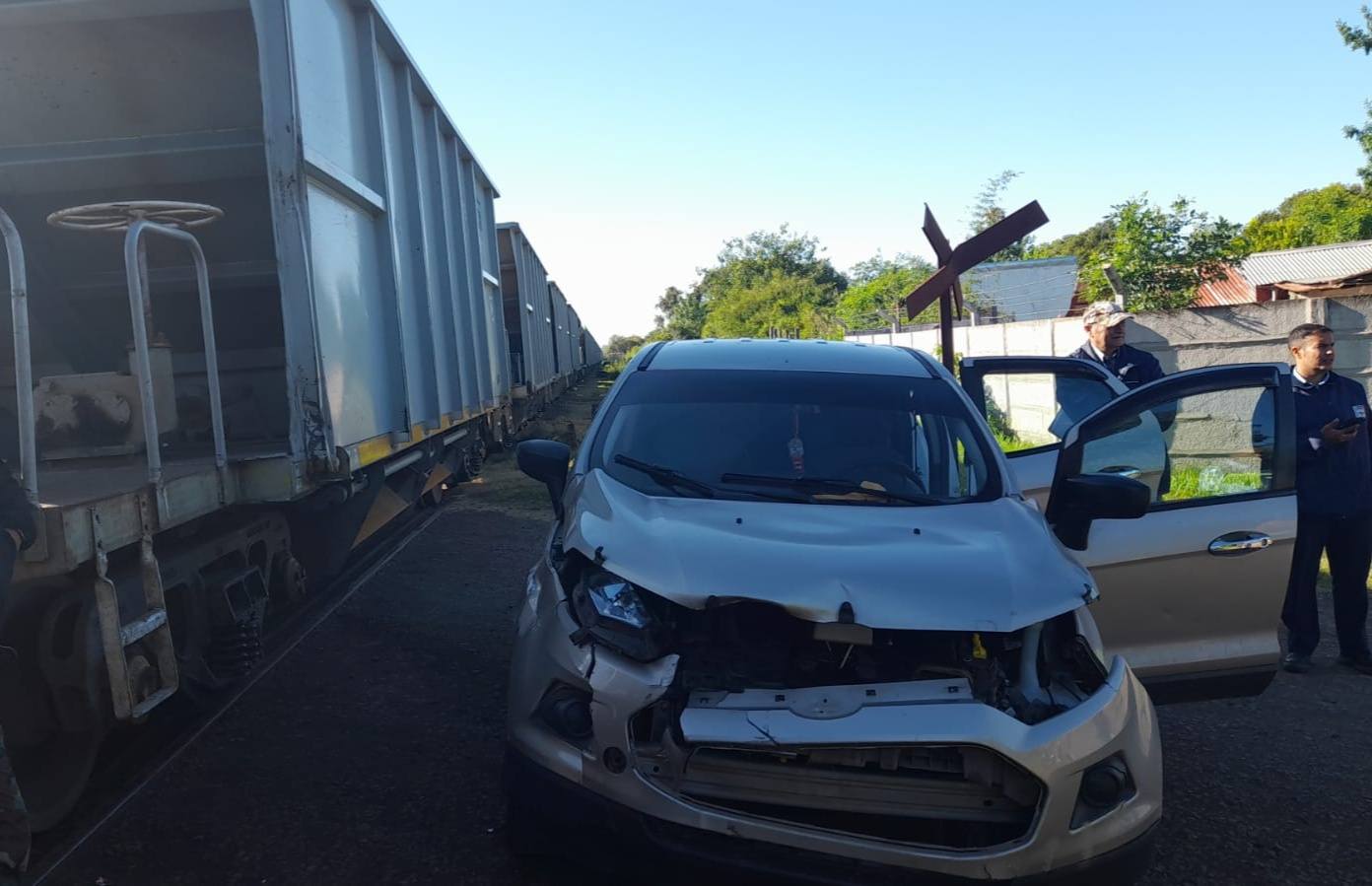 De acuerdo a datos recabados por Enfoque Digital, una Ford Eco Sport terminó seriamente dañada luego de ser embestida por una formación ferroviaria de cargas, el accidente ocurrió en las primeras horas de la mañana de este martes.