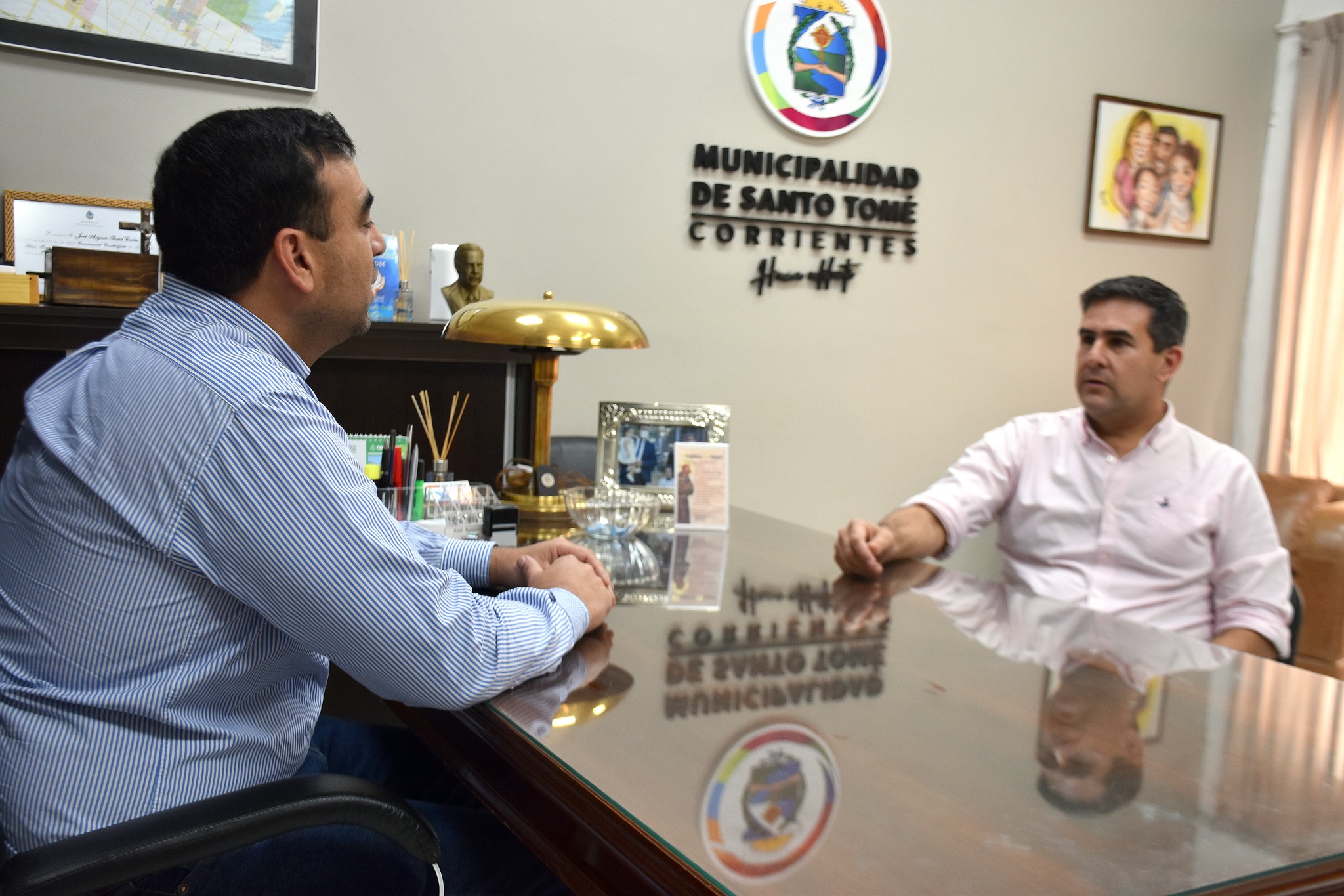 El Intendente de Curuzú Cuatiá, José Irigoyen, fue recibido por su par Augusto Suaid en la localidad de Santo Tomé, donde recorrieron las obras que está ejecutando el municipio santotomeño.