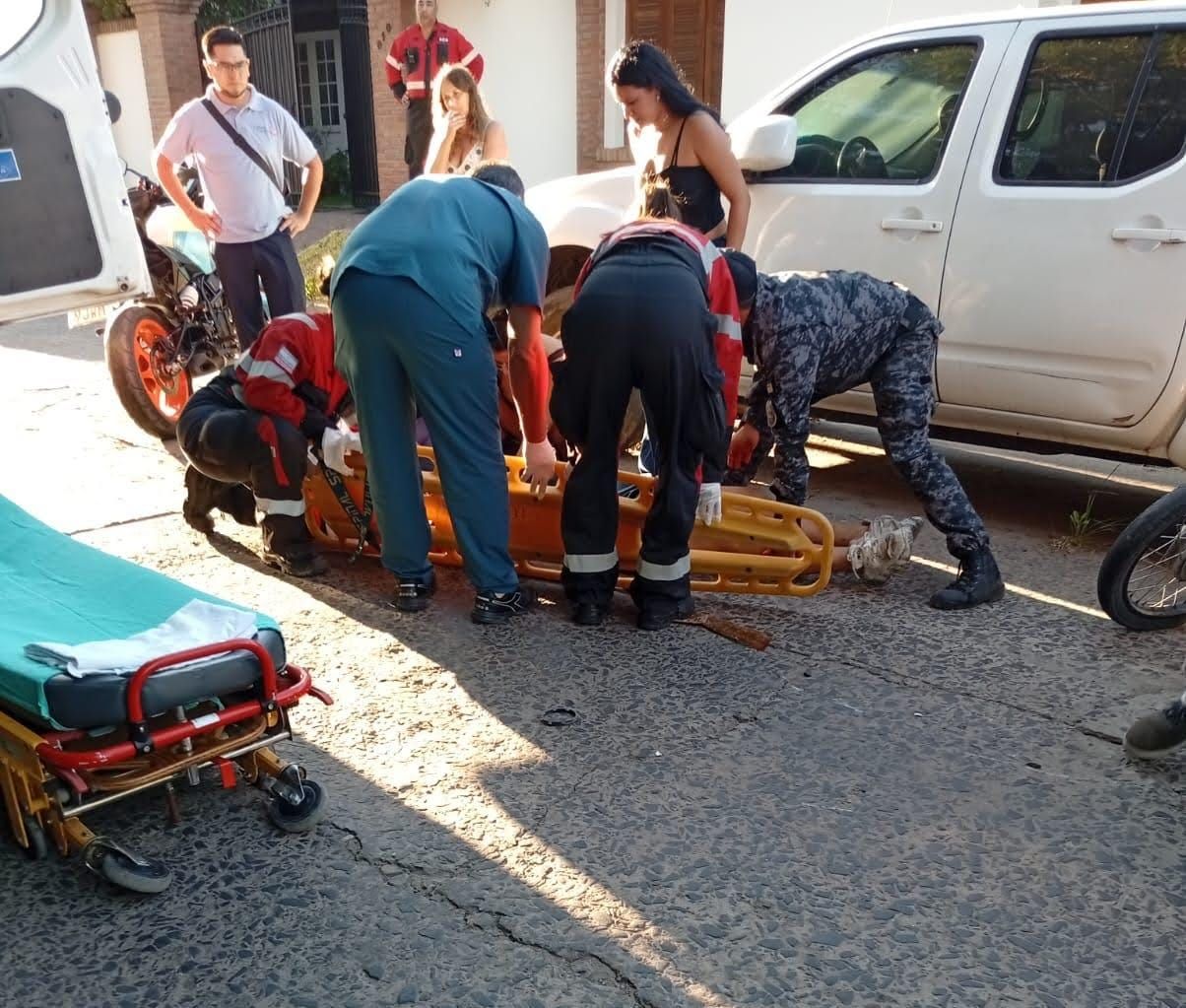 Una mujer que se desplazaba a bordo de una moto tipo DAKS perdió el control de su rodado y cayó al pavimento cuando circulaba sobre calle Don Bosco.