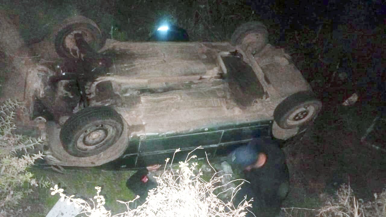 Un Ford Fiesta terminó despistó y volcó cuando circulaba sobre la ex ruta 14 en horas de la madrugada del domingo, informaron desde el cuartel de bomberos a Enfoque Digital.