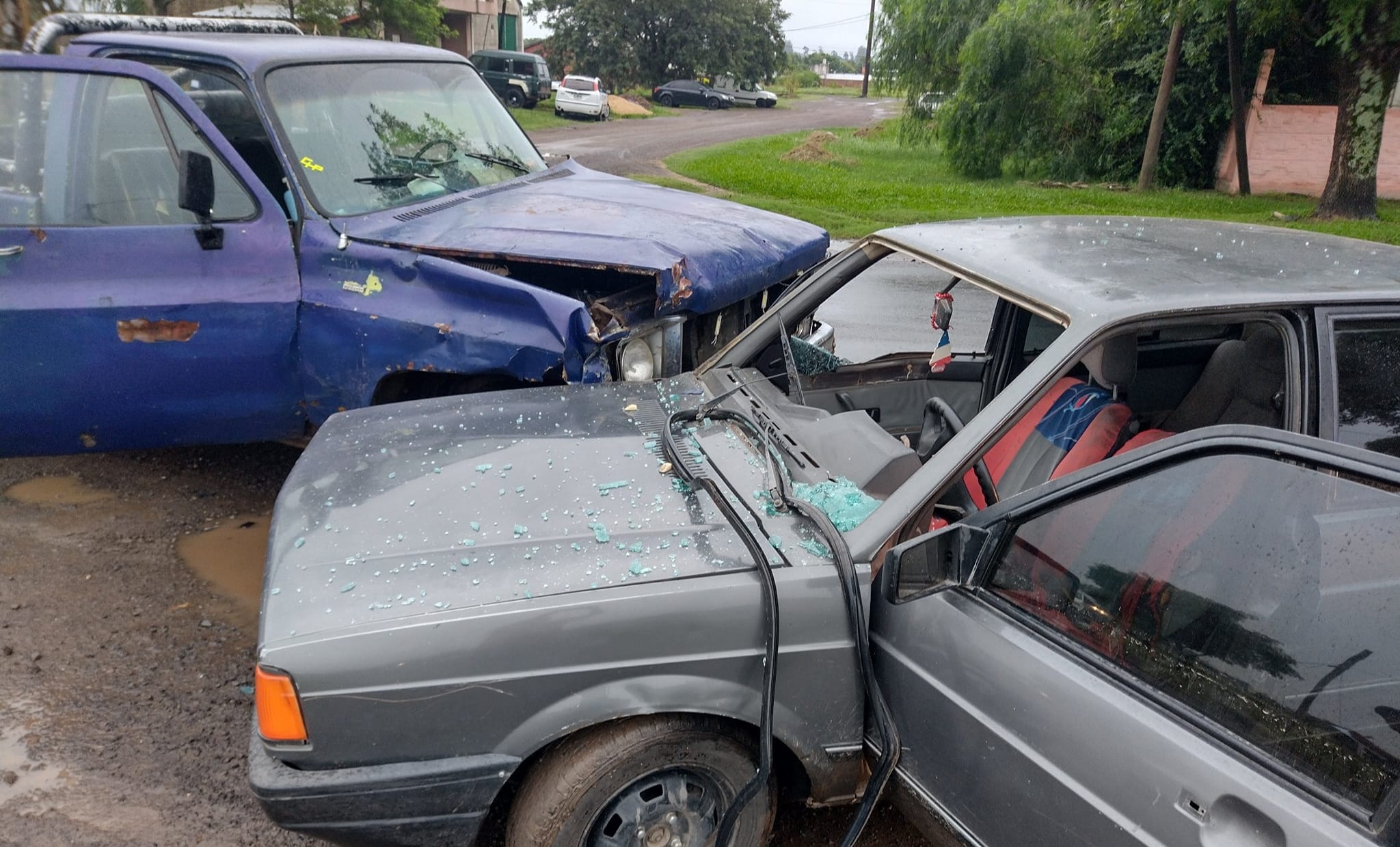 Una camioneta y un automóvil protagonizaron en las primeras horas de la mañana del jueves, 7:45 aproximadamente, un accidente sobre Avenida Eva Perón a metros de la Escuela Especial N° 7 “Juan Balestra”.