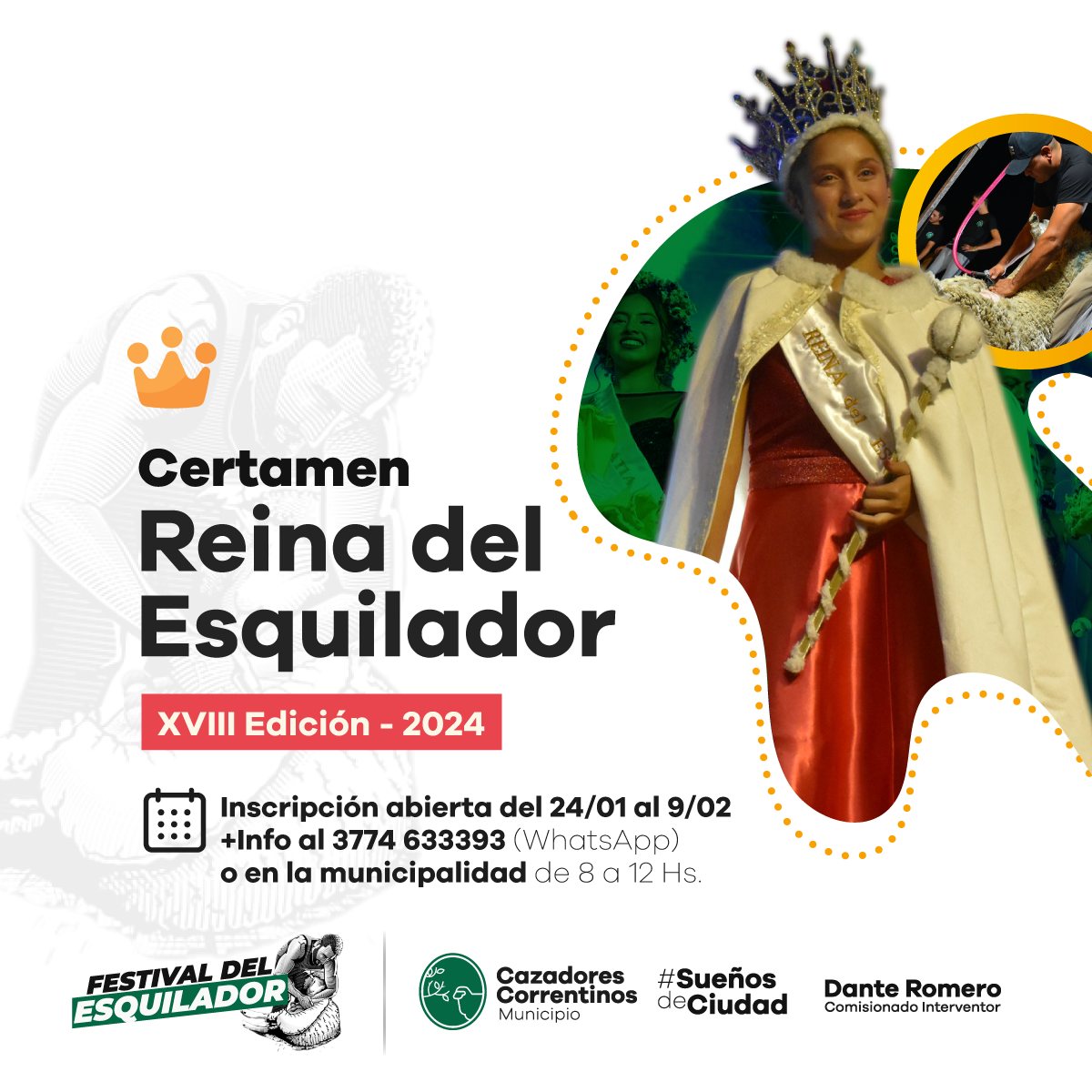 De acuerdo a lo informado a Enfoque Digital por el Comisionado Interventor de Cazadores Correntinos Dante Romero, hasta el 9 de febrero se encuentra abierta la inscripción para las postulantes a Reina del XVIII Festival del Esquilador.