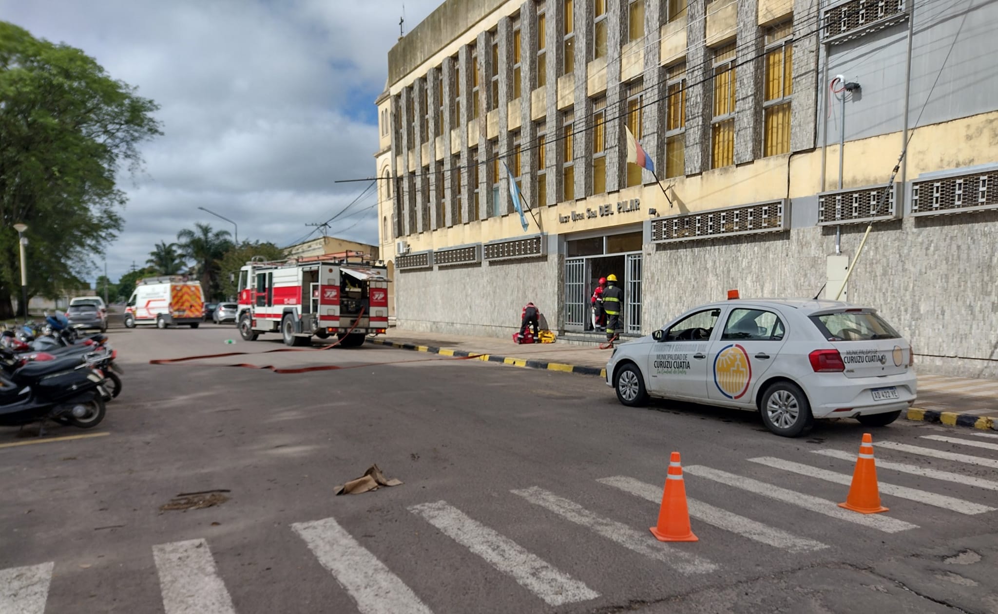 Alumnos de Segundo Año de la Carrera de Higiene y Seguridad del Instituto Superior de Curuzú Cuatiá realizaron este jueves en el Instituto Nuestra Señora del Pilar un Simulacro de Incendio, la actividad fue coordinada por el Profesor de la mencionada Carrera, Adrián Frola.