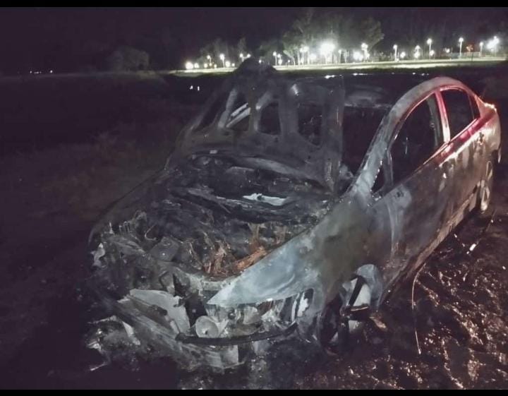 Un automóvil que se encontraba estacionado sobre Avenida Rucci y calle 3 de mayo se prendió fuego y fue consumido completamente por las llamas, así informaron las autoridades a Enfoque Digital.