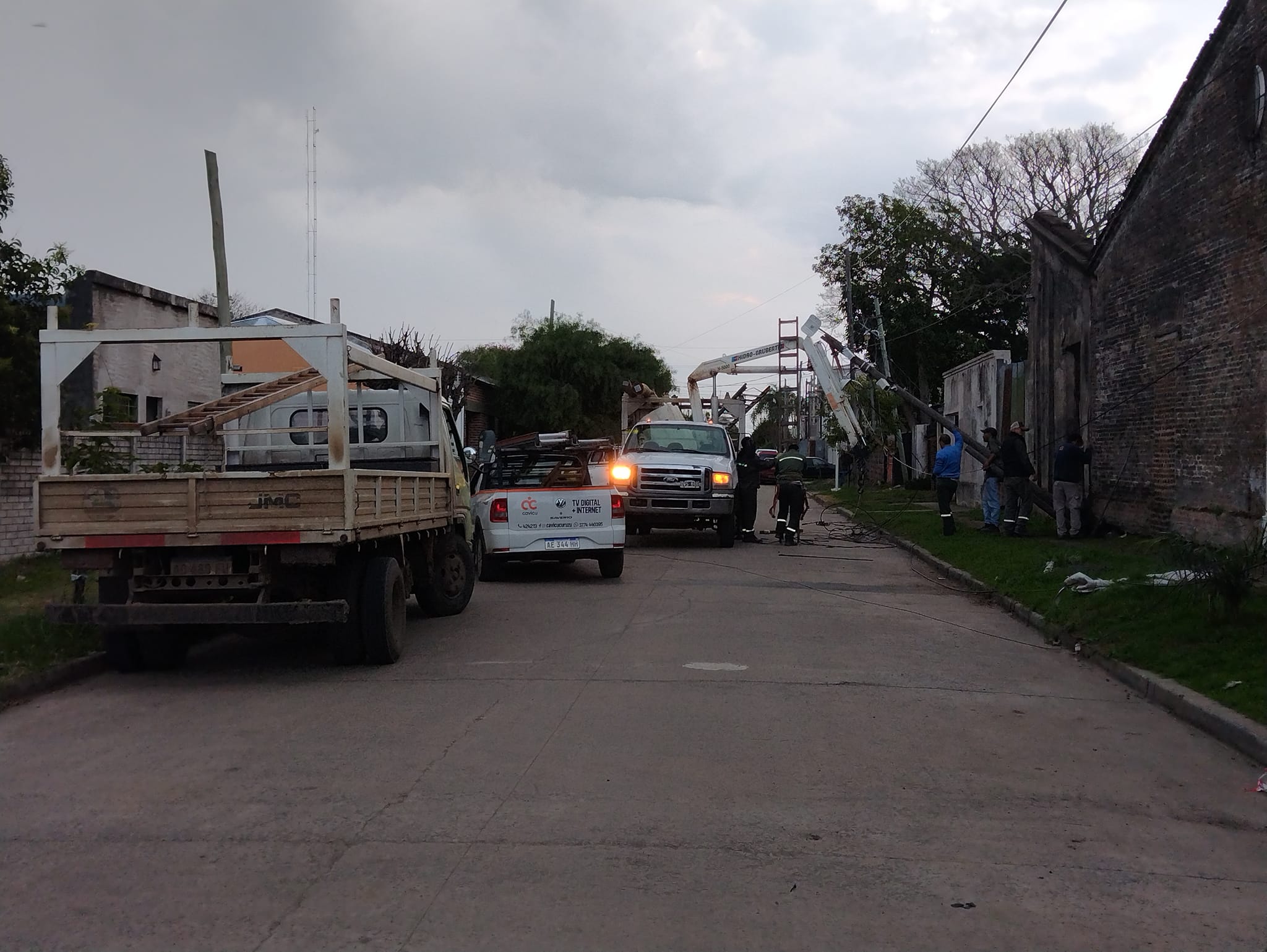 Al tocar los cables que estaban bajos se llevó puesto dos postes y arrastró el tendido de energía de la DPEC y de otras empresas de servicio, uno de los postes derrumbados tenía una cámara de seguridad.