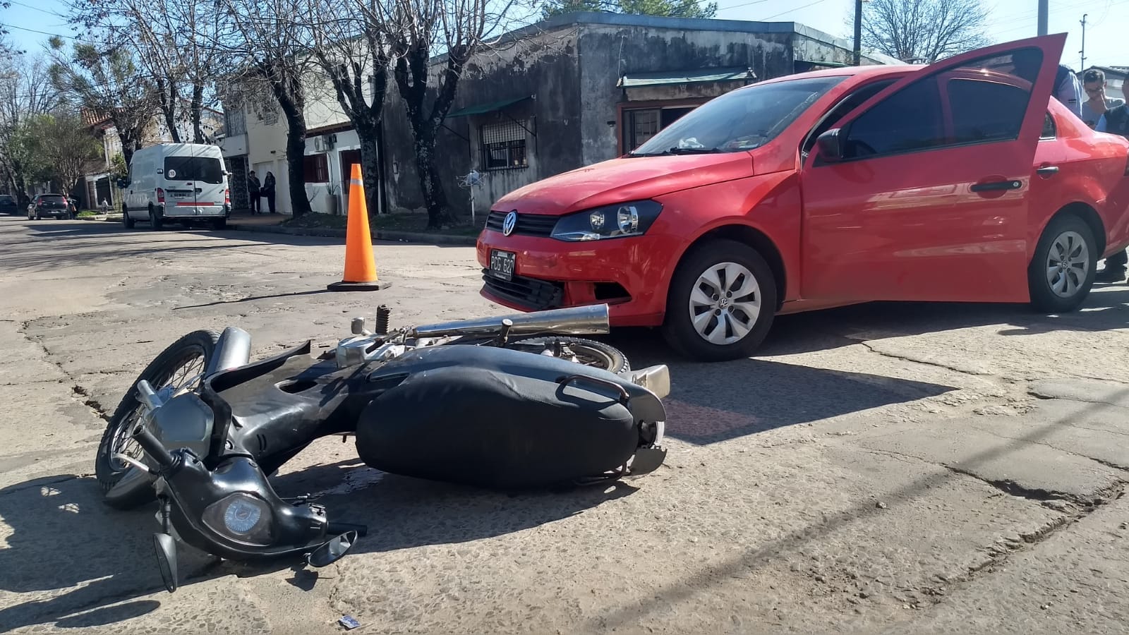 Un automóvil y una moto de 110 centímetros cúbicos protagonizaron un accidente minutos después de las 12 del mediodía del lunes en la intersección de las calles Irastorza y General Ramírez de nuestra ciudad, así informaron a Enfoque Digital