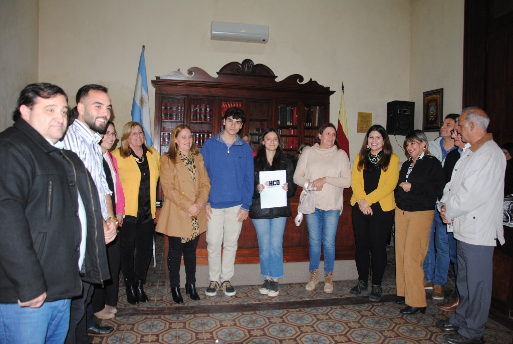 Antes de realizarse la sesión del viernes, el cuerpo de concejales hizo entrega del premio a “Mejor Hinchada” en la edición 2023 de la presentación de buzos, a la representante y dos alumnos sexto año de la promo 2023 del Colegio Salesiano San Rafael.