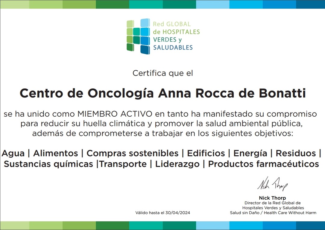 Mediante su cuenta oficial de Facebook, desde el Centro Oncológico Anna Rocca de Bonatti informaron que forma parte de la Red Global de Hospitales Verdes y Saludables.