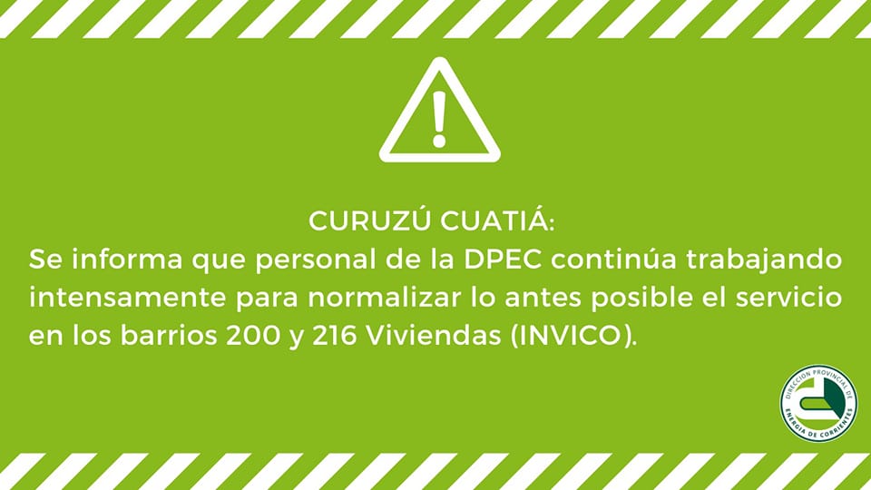 La Unidad Operativa Curuzú Cuatiá informó a Enfoque Digital que el transformador nuevo que fue instalado esta mañana en la zona del Centro Comercial de INVICO presentó una falla, razón por la cual los barrios 200 y 216 Viviendas se encuentran en estos momentos sin el servicio de energía eléctrica.