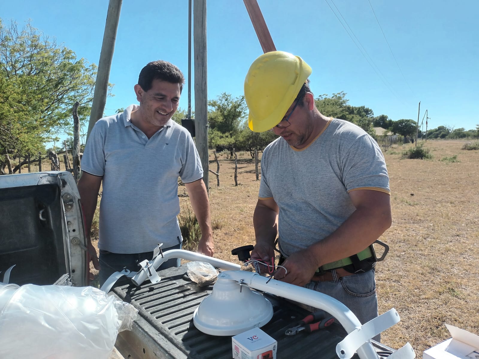 El Comisionado Interventor de la Municipalidad de Cazadores Correntinos, Dante Romero, inspeccionó los trabajos de alumbrado público que se están realizando en Paraje Basualdo.