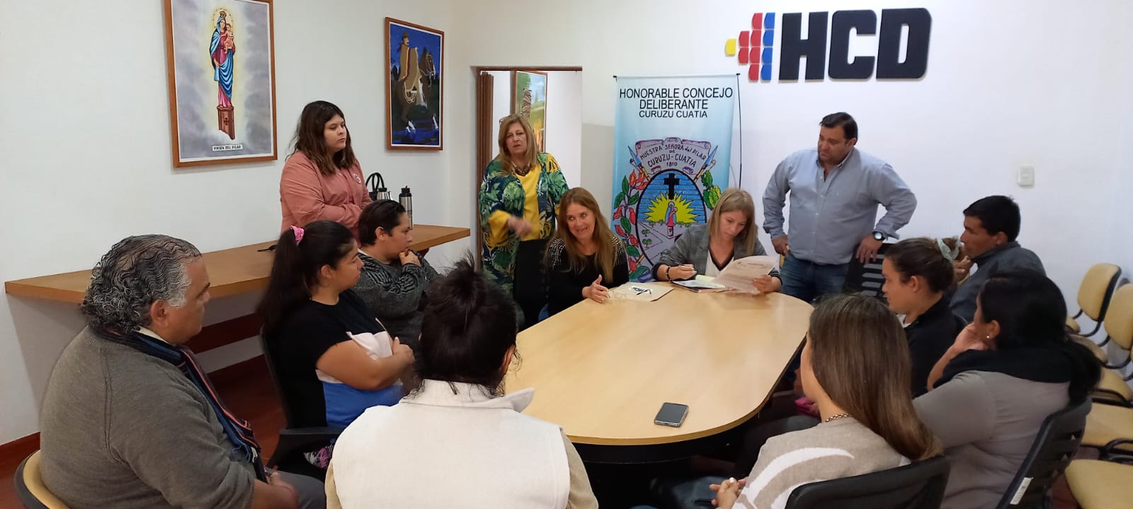 La presidente del HCD junto a concejales, recibieron en el Salón Mujeres Legisladoras Curuzucuateñas a las delegadas y delegados de los equipos de fútbol femenino de la Liga.